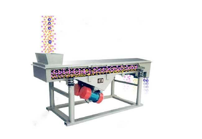 物料從給料機均勻地進入篩分機的進料口,在振動電機的激振下,向出料口方向邊跳動邊篩分,通過多層篩網篩分出數種產品和不合格的篩上、篩下物,分別從各自的出口排出,流入料倉或盛料筒.