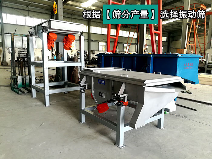 產(chǎn)量低時(shí),可選用小型號(hào)的直線振動(dòng)篩,如;產(chǎn)量高時(shí),可選用大型號(hào)的直線振動(dòng)篩,如電機(jī)功率也需要根據(jù)直線振動(dòng)篩產(chǎn)量大小來選擇合適的型號(hào)。