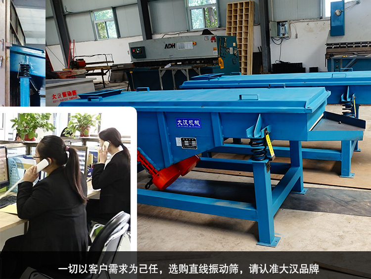 此外,我們提供優質的人性化服務,切以客戶需求為己任,從客戶角度出發,按照客戶的想法和意愿及時溝通與設計,讓客戶感到舒適自然的享受。我們保證將永遠努力,努力讓客戶滿意,選購直線振動篩,請認準大漢品牌。