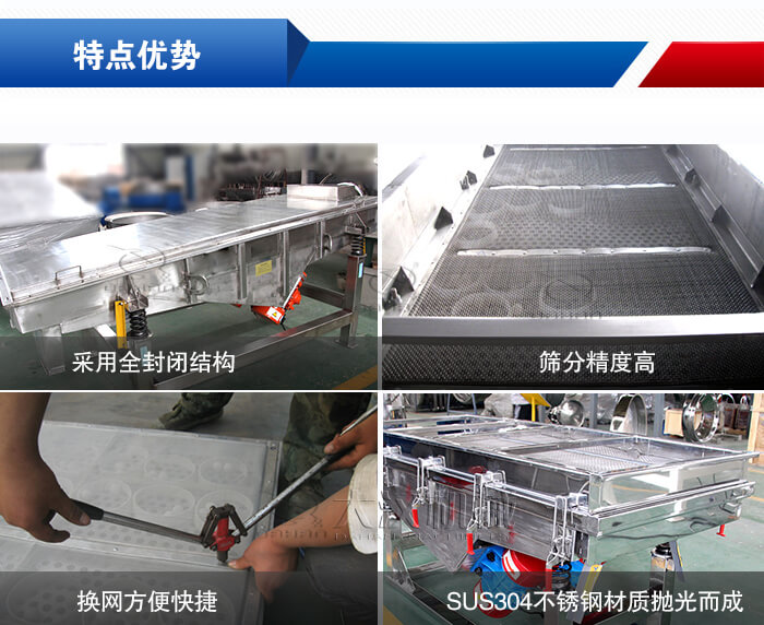 產(chǎn)品介紹:食品直線振動(dòng)篩是專(zhuān)為食品行業(yè)設(shè)計(jì)的一種食品振動(dòng)篩設(shè)備,篩機(jī)內(nèi)外進(jìn)行拋光處理,材質(zhì)選擇304不銹鋼材質(zhì),符合食品行業(yè)衛(wèi)生標(biāo)準(zhǔn)。